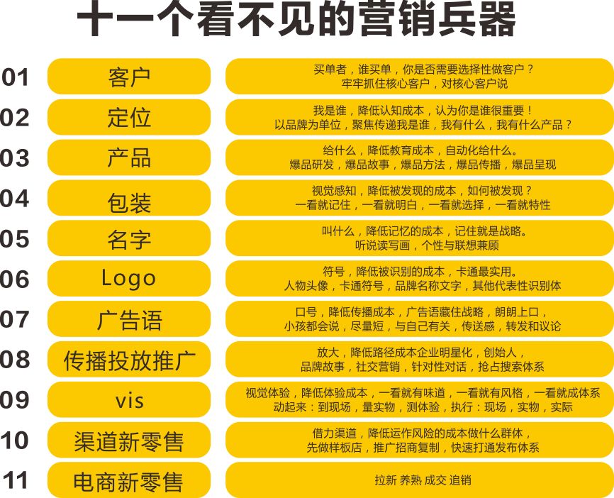 涉及企业成功的方法和哲学:从项目的前期市场到选择,中期从包装到策略,从传播到企业家打造,后期整体推广上市,已参与百家本土企业品牌策划和业绩提升。
